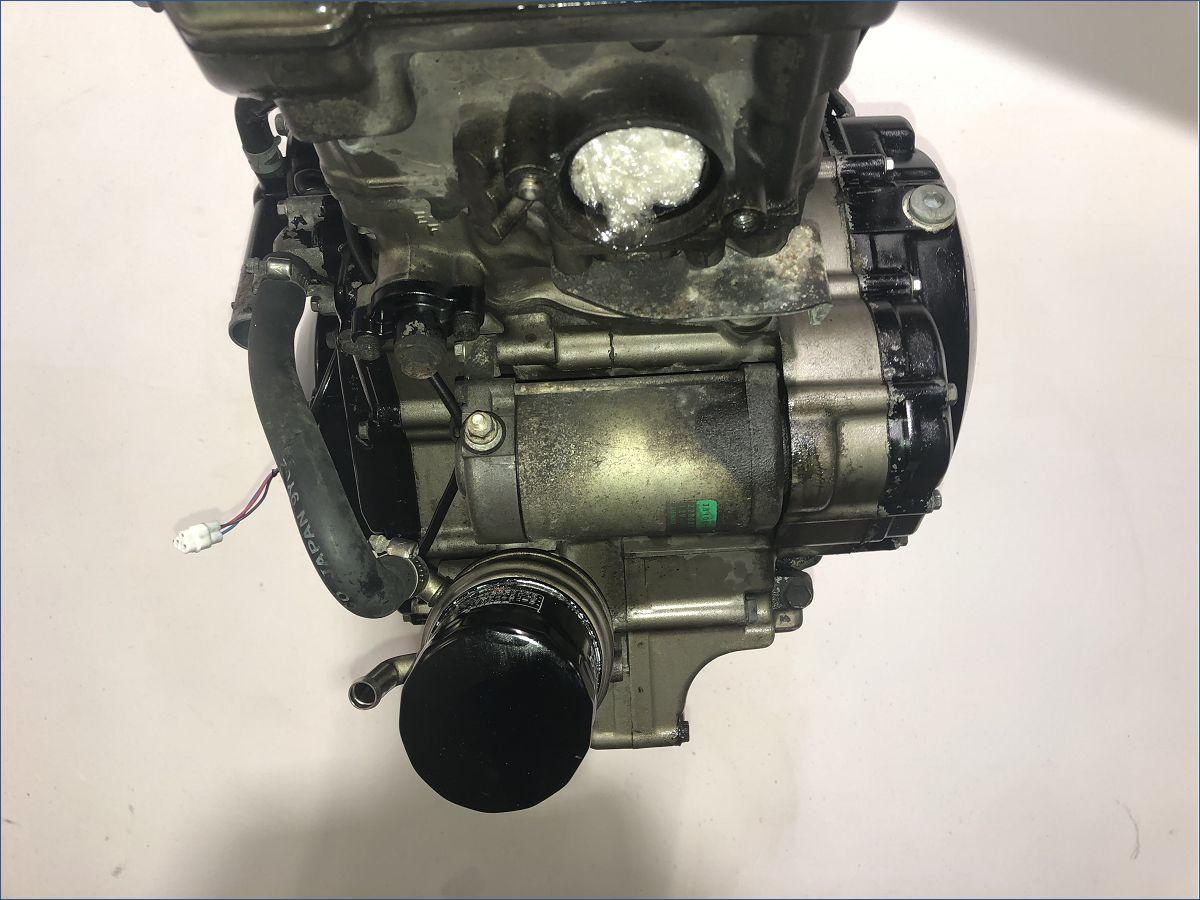 Segmentation à prévoir, pipes d'admission HS , éclats de peinture présent, carter d'embrayage enfoncé, présence d'une oxydation ainsi que de 2 vis d'echappement cassé