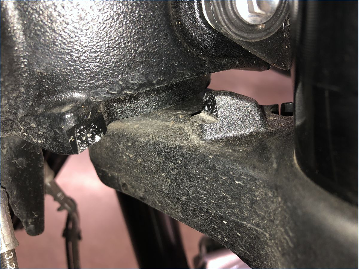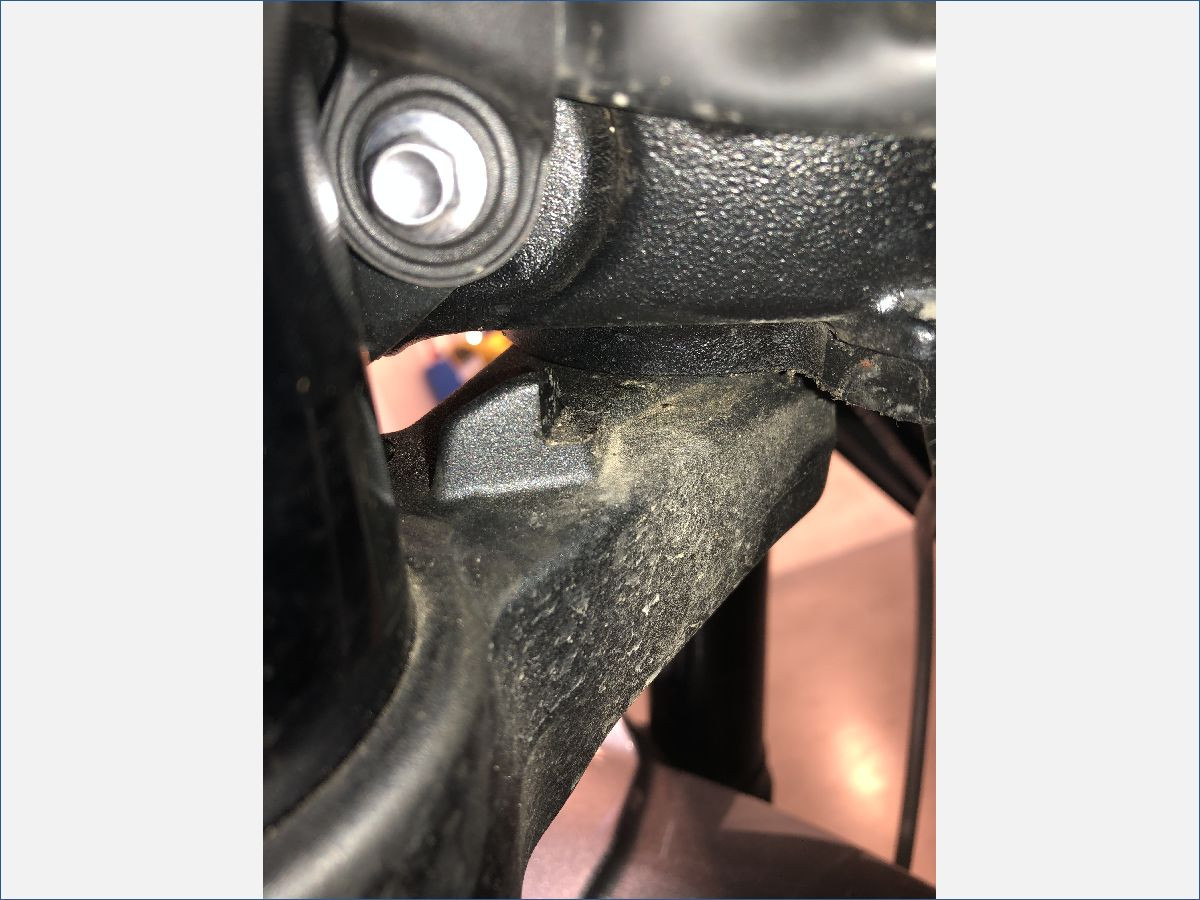 Jeu au niveau de la direction, portée de roulement à contrôler.Contrôle de cadre à prévoir.