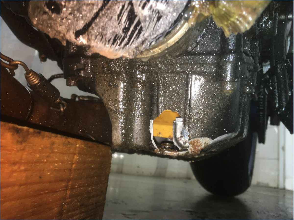 Prévoir la réparation du carter moteur, voir photos.Contrôle de cadre à prévoir.