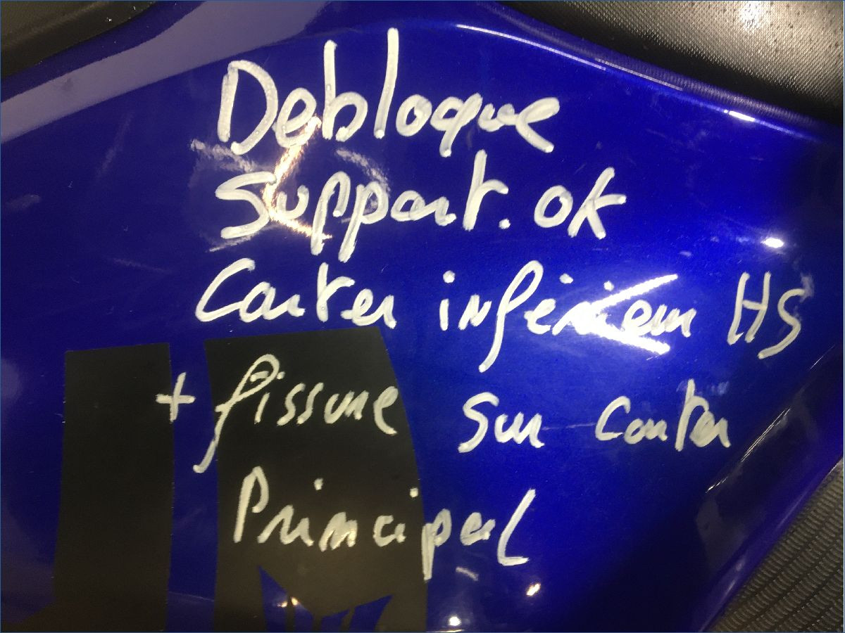 Prévoir la réparation du carter moteur, voir photos.Contrôle de cadre à prévoir.