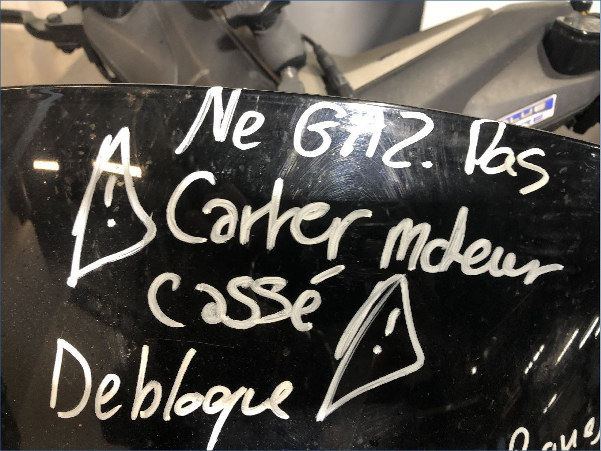 Carter moteur cassé, voir photos.Pas de contrôle de cadre à prévoir.