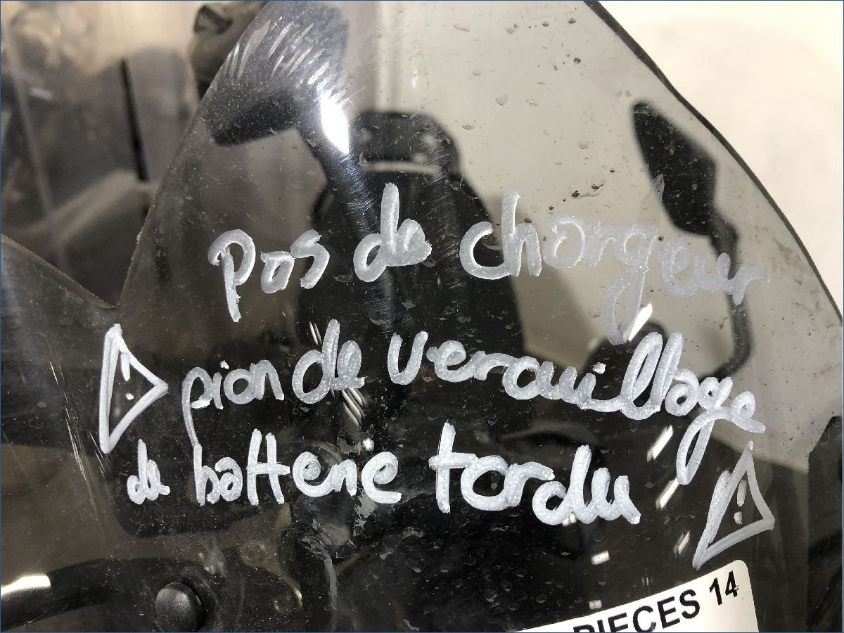 Batterie présente mais plastique batterie absent.Contrôle de cadre à prévoir.